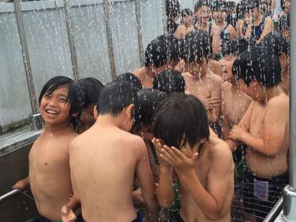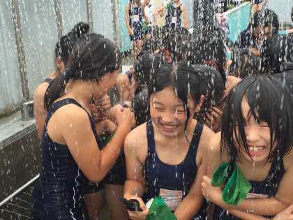 3・4年生のプール開きを始めるころには、薄日がさしてきました。寒さも和らいでいましたが、シャワーはやっぱり冷たくて、みんな大騒ぎでした。