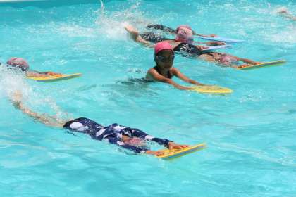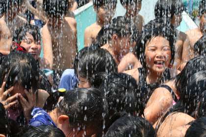 梅雨の晴れ間の青空を、3・4年生は思い切り楽しむことができました。プールに入るには最高の一日でした。