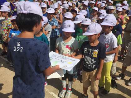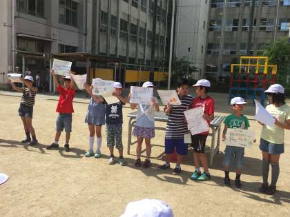 光キッズ展覧会は、夏休みの作品を展示する催しです。これは児童会が行う行事なので、代表委員が朝会で作品作りを呼びかけました。今年も夏休みの作品が楽しみです。