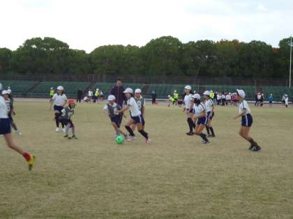 午後からは、会場を第2競技場に変え、ドッジボールとサッカーの試合に参加しました。住之江区内の4つの小学校同士で、7分間のゲームを行いました。子どもたちは、チームの勝利のために精一杯がんばっていました。たとえ負けても、勝った相手に拍手を送り、勝敗に対する態度も素晴らしかったです。