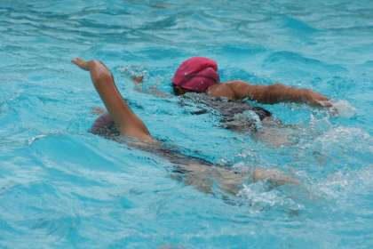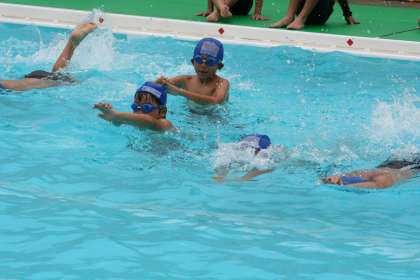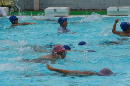 2・3年生は、もう十分に泳ぐことができます。あとはバタ足や腕の使い方を指導して、いかに楽に遠くまで泳ぐことができるかです。