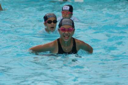 6年生は、小学校で最後の夏を迎えています。このプールで泳ぐのも今年で終わり、毎回のプール水泳を大切にしています。