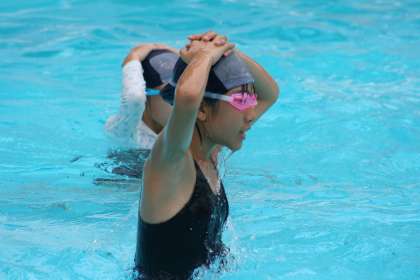 夏にひとまわり大きく成長する心と体。水泳は、体をきたえるには適したスポーツです。しっかりと泳いで中学校に進む準備をしてほしいです。