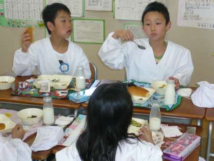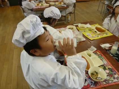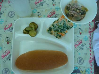 今日の給食は、中華煮、チヂミ、きゅうりの甘酢づけでした。チヂミはめずらしかったのか、おいしそうに食べていました。