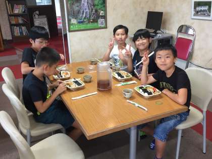 ハチ高原に到着しました。お腹がすいたという声が聞かれたので、早々にお弁当を食べています。