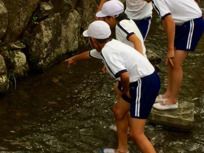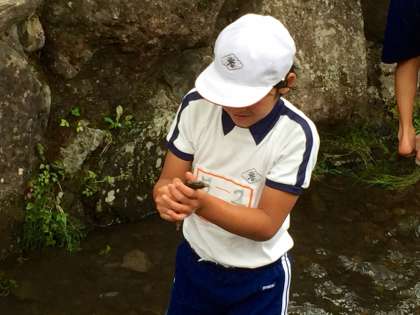 アマゴの動きは素早くて、なかなか苦戦しています。