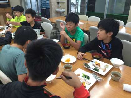 お腹がすいたという声が聞かれました。みんな、朝ごはんの準備ができると、嬉しそうに食べ始めました。