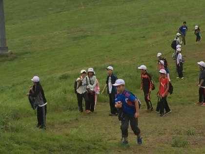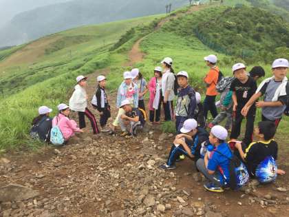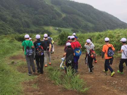 高丸山から少し登ったところで、宿舎に引き返すグループと、あくまで鉢伏山山頂を目指すグループに分かれました。ここまで登った子どもたちは、立派でした。