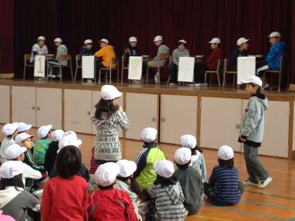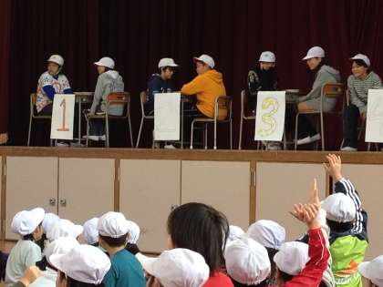 給食委員会は、児童集会で正しい給食の食べ方を発表しました。わざと悪いマナーをみせて、みんなで見つけあいました。今日の給食から生かされてくることだと思います。