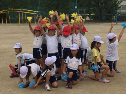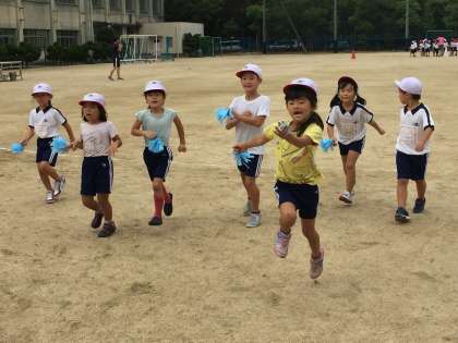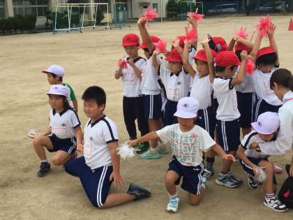 1年生は、はじめての運動会にもかかわらず、のびのびと演技の練習をしています。隊形移動も元気いっぱいです。