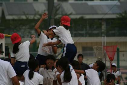 迫力満点の騎馬戦。気持ちで負けない、逃げないたくましさが見られました。
