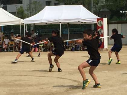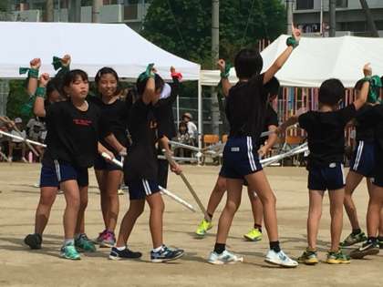 4年生はかっこいい剣の舞を披露しました。黒い衣装もきまっていました。