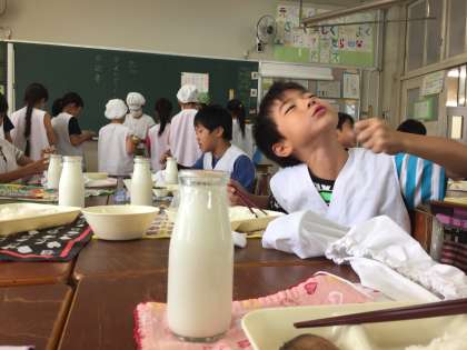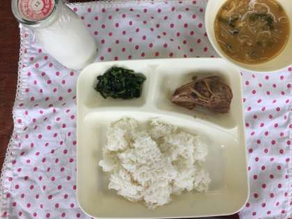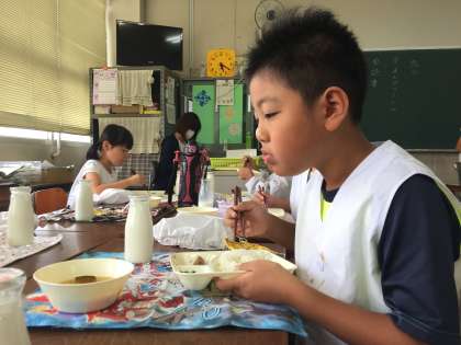 今日の給食は、なまりぶしのしょうが煮、みそ汁、ほうれんそうのごまあえでした。なまりぶしは、大きな切り身で食べごたえがありました。
