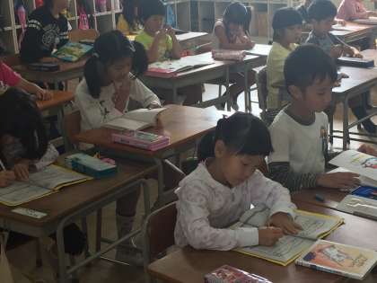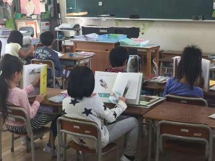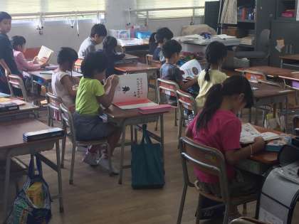 毎週水曜日の朝は、読書の時間です。先生が朝の打ち合わせをしている間、学級文庫の本を読みます。