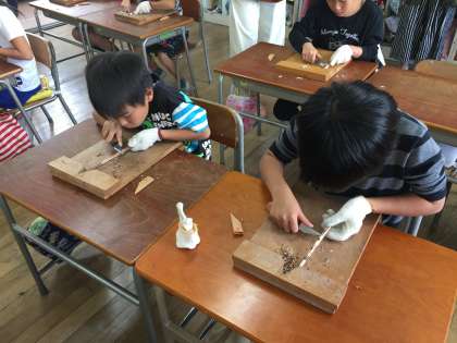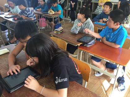 久しぶりの学習参観だったので、子どもたちも緊張していました。タブレット端末、デジタル教科書、小刀を使った工作や少人数学習の様子などもごらんいただきました。