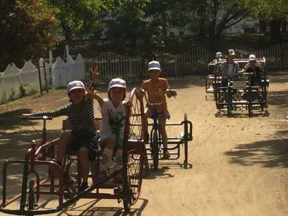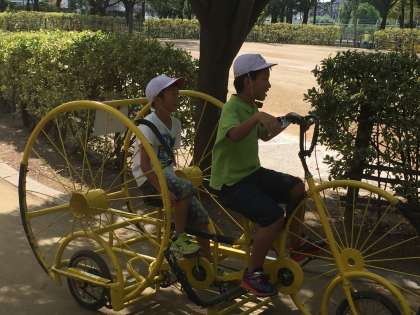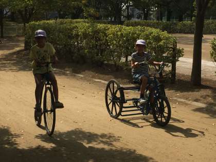昔の自転車は不安定で、少しこわいです。多くの人が知恵を出し合って改良し、現在の安全で快適な自転車を作り出してきたことを体験的に学びました。