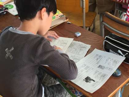 光小では、子どもがつくる子どもの漢字辞書を製作中です。これは全学年で取り組みます。全員でつくることに価値があります。みんな真剣に意味や書き順などを調べていました。