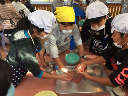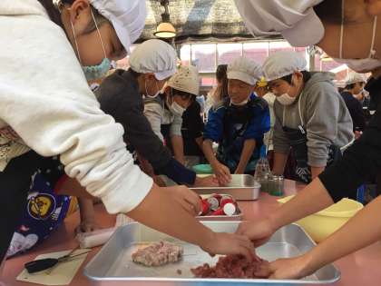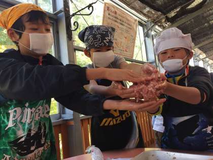 もくもくファームに到着して、ウィンナーづくりを始めました。