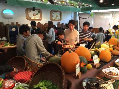 ランチタイムになりました。有機栽培の野菜や作りたてのハムやウィンナーがたっぷりです。ビュッフェなので、自分が食べたいだけ食べることができます。