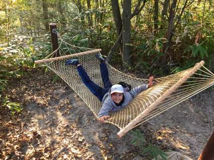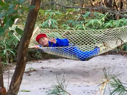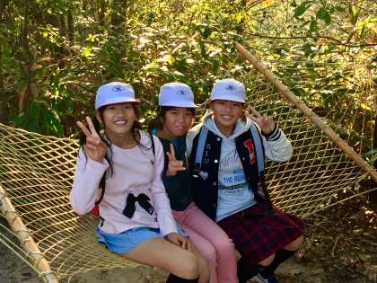 ハンモックが楽しかったらしく、ワイワイと言いながら揺られていました。