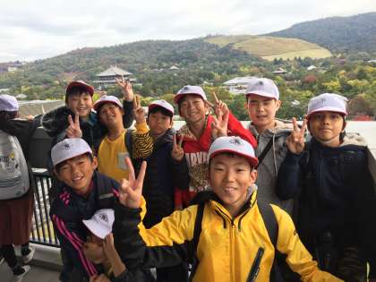 5年生は延期になっていた遠足で、奈良・東大寺に行きました。最初に奈良県庁の屋上から奈良市内を見わたしました。東大寺、興福寺がよく見えて、期待感が高まりました。