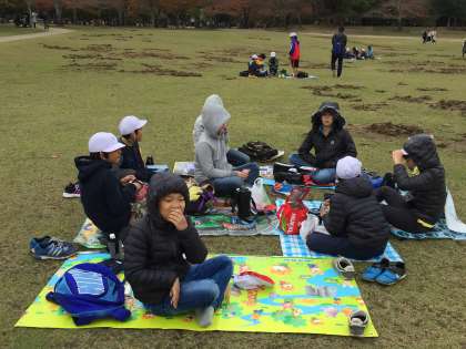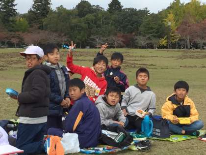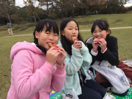 お弁当は奈良公園で食べました。鹿がやってくることが多いのですが、今日は大丈夫でしたが、カラスに荷物をねらわれた子がいました。