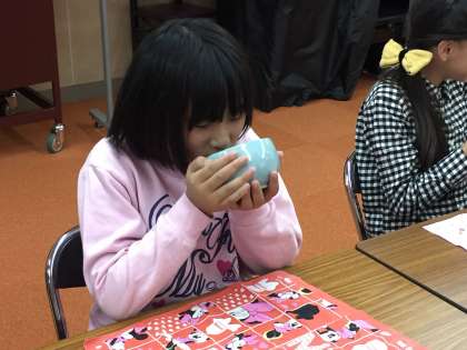 小蝶の会の相田先生、勇先生のご指導で茶道教室を行いました。もう何年もお世話になっています。学ぶことは茶道の作法を通して、一杯の茶におもてなしの心をこめることです。今日はPTAのお母さんにもお手伝いをいただきました。