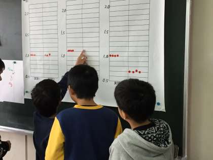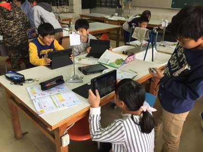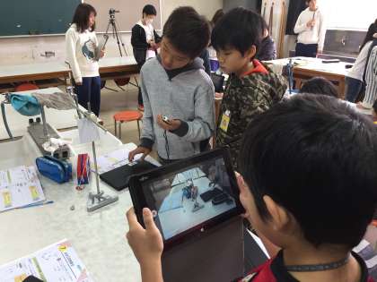 5年生はふりこの振れ方をタブレットで記録して実験していました。動画でふりこを撮影して、触れる回数と時間を計測していました。いろいろな活用方法があるものです。