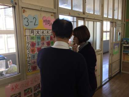 今日は、ドイツのライプチヒ大学バーバラ・ドリンク教授と大阪教育大学戸田有一教授が光小の教育活動を視察に来られました。若手教員の授業参観が目的でしたが、学校を含めて町全体の清潔で落ち着いた環境、子どもたちの生き生きとした様子を賞賛していただきました。