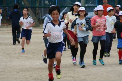 インフルエンザ、感染性胃腸炎等の流行で学級休業が出始めています。本校でも、その対策をとりつつ、全校で楽しく走っています。