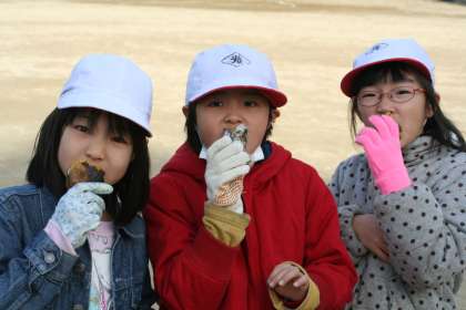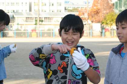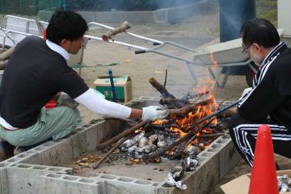 落ち葉を集めて管理作業員さんや先生にお芋を焼いてもらいました。安納芋とシルクスイートの2種類がありました。どちらもホカホカでおいしかったです。