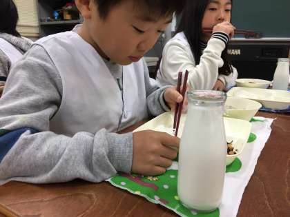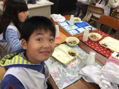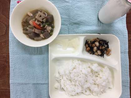 今日の給食は、筑前煮、ひじき豆、だいこんのゆず風味でした。ひじき豆は、噛みごたえがあり、何度も噛むうちに豆の香りが口に広がりました。今はやわらかいものを食べることが多いですが、豆類をしっかりと噛んで食べることも大切です。