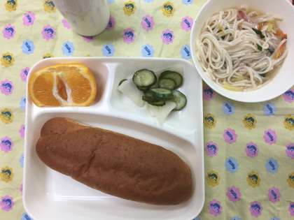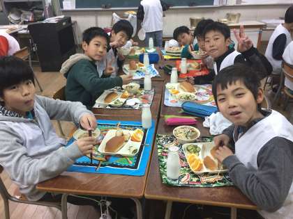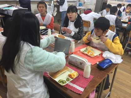 今日の給食は、ちゃんぽん、ピリ辛あえ、伊予かんでした。量もたっぷりあって、あったまる献立はうれしいですね。伊予かんを食べるのに苦労している子もいました。5年生はみんな元気です。
