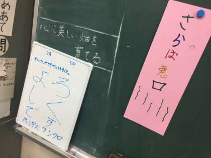 今日の5年1組の価値語は「さらば、悪口」でした。悪口は、本人にむかって言うことよりも別の友だちと言うことが多いですから、「かげ口」です。これは人の心を傷つけるいじめです。そんなことをやめようということを自分の言葉で書いていました。すばらしいです。