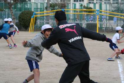 今日はトップアスリートふれあい事業で、セレッソ大阪のコーチ5名が、光小に来てくれました。前半は、5・6年生にサッカーの基本的な動きを指導していただきました。