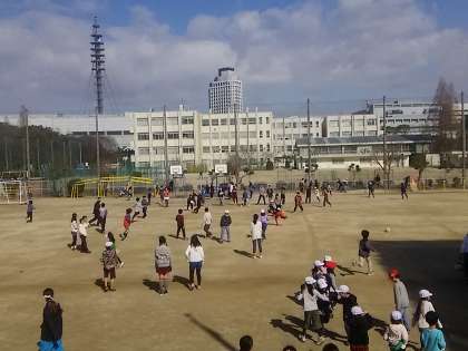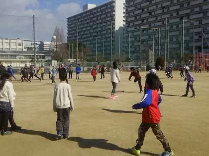 今月の生活目標は「寒さに負けず外で元気に体を動かそう」です。運動委員会がコートを引き、「運動委員会に挑戦してください!」と、みんなでドッジボールを楽しんでいました。