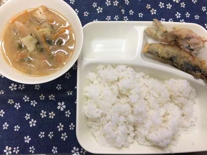 今日の給食は、いわしのフライ、みそ汁、焼きのりでした。校長室に来てくれた6年生は落ち着いた男子チームでした。はしゃくことはありませんが、しっかりとした中学生になると思います。