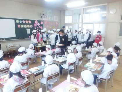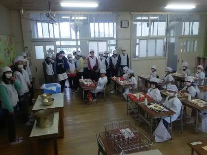 お行儀よく座って食べられるかな?よくかんで食べられるかな?おいしい給食、いただきます!