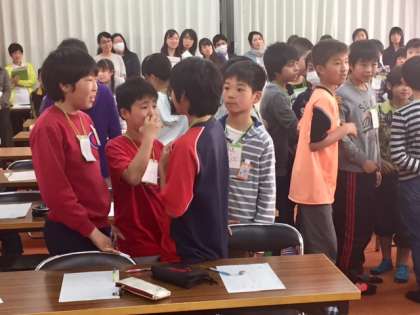 北九州市から菊池省三先生をお招きして、授業研究会を開催しました。多目的室がいっぱいになるくらいの参観者が見つめる中で、子どもたちは伸びやかに学んでいました。