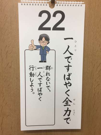 今年度最初の朝会でした。私は菊池省三先生の「価値語のひめくり」を見せながら、「一人ですばやく全力で」という話をしました。子どもたちは、群れたがります。大人だってそうかもしれません。そして友だちとかたまって、朝会などの折に、遅れてくる子は、残念ながらたいへん多いです。群れないで一人ですばやく行動できる子になってほしいと思います。