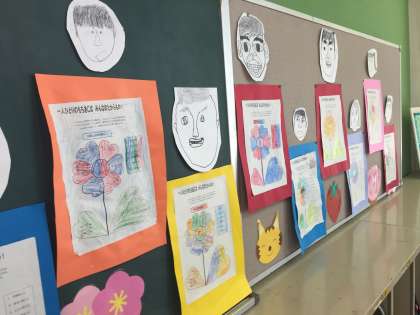 教室に学級の目標がかかげられるようになってきました。1年後になりたい自分の姿を、イメージさせることは、とても大切なことです。学級づくりは、ここから始まります。
