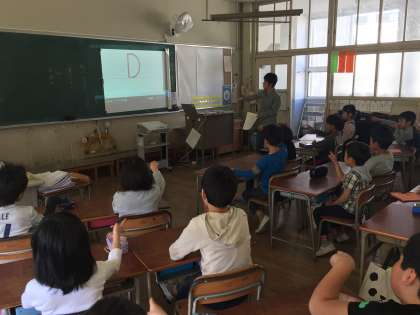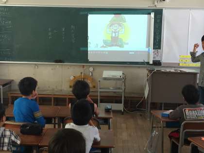 朝に廊下を歩いていると、どこの教室からも英語が聞こえてくるようになりました。歌にのせてアルファベットや簡単な会話文にふれるので、くりかえすうちに子どもたちはおぼえてしまいます。あくまでも楽しく英語にふれる時間です。