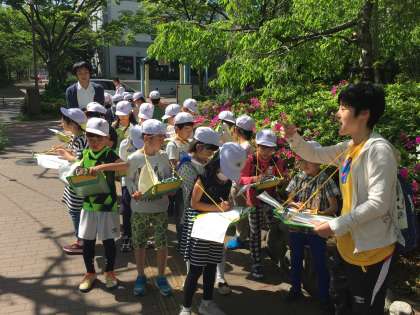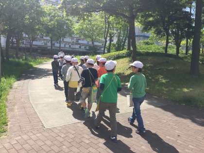 3年生は校区をめぐって、どこにどんな施設があるかを地図上で確かめる学習をしました。生活科から社会科になって、方位や地図記号の学習もはじまります。