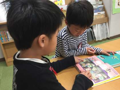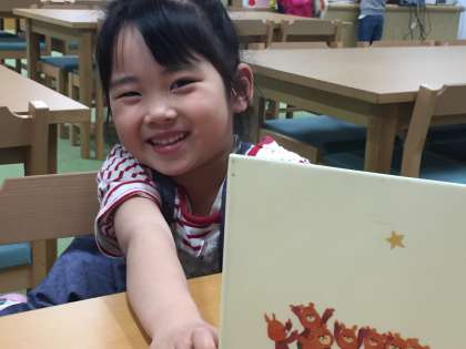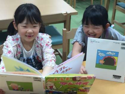休み時間には、毎日、本を読みたいという子が図書室に集まってきます。本年度の1年生は絵本好きな子が多くて、たくさんやってきます。
