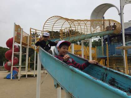 3・4年生は遠足で服部緑地公園に行きました。中学年は、学校中で一番活発です。空模様を気にしつつでしたが、おかげさまで雨にはあわず、思い切り楽しむことができました。