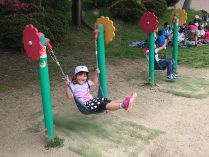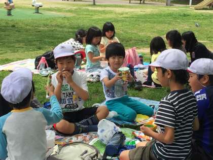 遠足では、ゆっくりとすごす時間も大切です。花かざりをつくって遊んでいる子もいました。お弁当は、みんなで楽しく食べることができました。