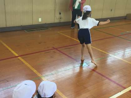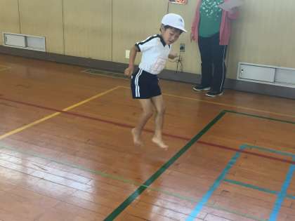 三本の線をまたぐように、左右にジャンプして反復します。すばやい動きでたくさん跳んでいました。