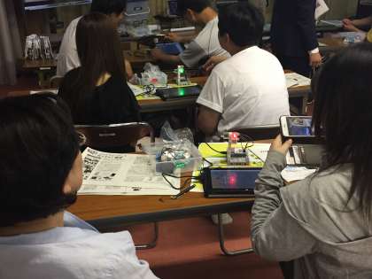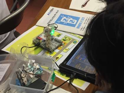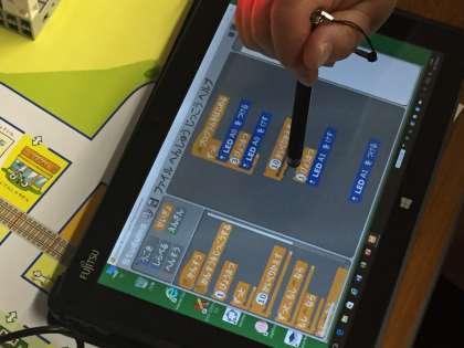 平成32年度からの学習指導要領では、プログラミング学習が導入されます。それに向けて、教職員の研修を始めています。本校では、咲洲みなみ小中一貫校と連携していこうと考えています。22日は、南港緑、南港渚小と一緒に、タブレットに命令を入力して、信号機を動かす研修を行いました。