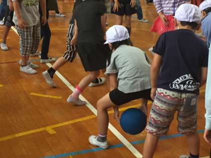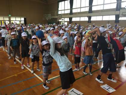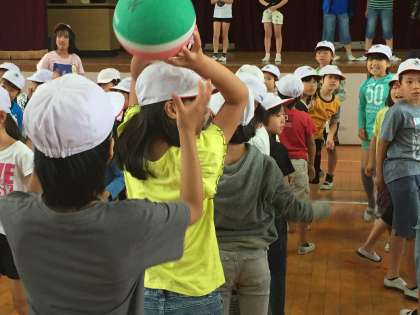 たてわり班で集会をしました。ボールを後ろに送って、先頭にもどして早さを競う簡単なルールのゲームでした。みんなでワイワイいいながら、楽しい時間をすごしました。