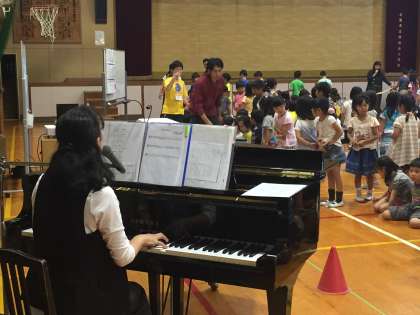 いろんな絵本を読んでいただきました。ピアノが入り、歌があり、動きがありました。そして、「おへそ」や「赤ちゃん」のお話では、生まれてきたことへの感謝の気持ちをもつ時間もありました。何メートルもある長い絵本も見せていただき、みんなびっくりでした。